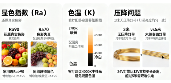 LED燈帶選購指南:顯色指數(shù)、色溫和壓降,這些關(guān)鍵參數(shù)別忽略
