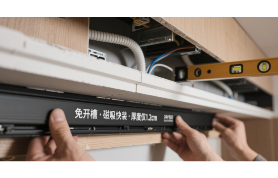 線槽是暗裝布線的關(guān)鍵部件,它可以將燈帶隱藏起來,使整個(gè)安裝更加美觀。首先,根據(jù)標(biāo)記的位置,使用電鉆在墻面上打孔,然后將線槽用螺絲固定在墻面上。線槽的安裝要保持水平和垂直,避免出現(xiàn)彎曲或傾斜的情況。