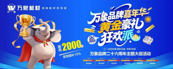 廿六載風雨同行,感恩每一份不離不棄的信賴!為回饋消費者始終如一的關注與厚愛,萬象品牌26周年慶特別打造“萬象品牌嘉年華?黃金豪禮狂歡派”主題大促——8月23日至9月15日,活動火熱啟幕!誠邀您親臨線下門店,解鎖26周年專屬優(yōu)惠與驚喜福利,在這場周年狂歡里,共赴品質(zhì)之約,收獲滿滿誠意。