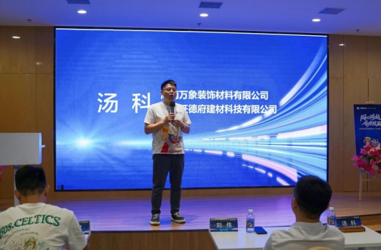 湖南萬象裝飾材料有限公司、湖南旺德府建材科技有限公司總經(jīng)理湯科先生,以“模式賦能產(chǎn)品價(jià)值”為核心展開分享。他不僅系統(tǒng)闡述了萬象品牌“直連客戶、嚴(yán)控品質(zhì)、高效服務(wù)”的三大優(yōu)勢(shì),更通過深度解讀圓弧產(chǎn)品、金鉆龍骨、石膏板2代三大新產(chǎn)品,讓核心加盟商直觀感受到品牌強(qiáng)勁的產(chǎn)品力。同時(shí),他進(jìn)一步明確了集團(tuán)“高端板材+高端輔材+高端衣柜定制”的戰(zhàn)略定位,為品牌發(fā)展方向錨定核心。