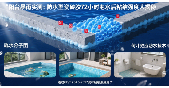 在家庭裝修中,陽臺(tái)作為連接室內(nèi)與室外的過渡空間,常常會(huì)受到各種自然因素的考驗(yàn),其中暴雨就是一個(gè)不容忽視的問題。陽臺(tái)地面和墻面鋪設(shè)瓷磚時(shí),選擇一款優(yōu)質(zhì)的防水型中國瓷磚膠品牌至關(guān)重要。那么,防水型瓷磚膠在經(jīng)歷長時(shí)間泡水后,其粘結(jié)強(qiáng)度究竟還剩多少呢?今天,我們就通過一場陽臺(tái)暴雨實(shí)測來一探究竟。