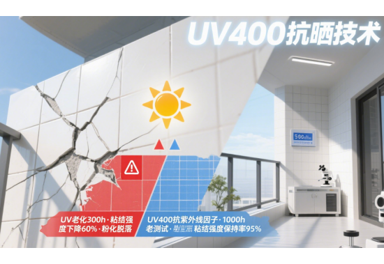 陽臺的環(huán)境相對復雜,不僅要承受陽光的直射,還會面臨溫度的劇烈變化、雨水的沖刷等多種因素的影響。陽光中的紫外線(UV)是導致材料老化的主要原因之一,長期的紫外線照射會使瓷磚膠的分子結構發(fā)生變化,從而降低其粘結強度和耐久性。此外,溫度的變化會引起瓷磚和基層材料的膨脹和收縮,產生應力,如果瓷磚膠的柔韌性和抗變形能力不足,就容易導致瓷磚空鼓、脫落等問題。