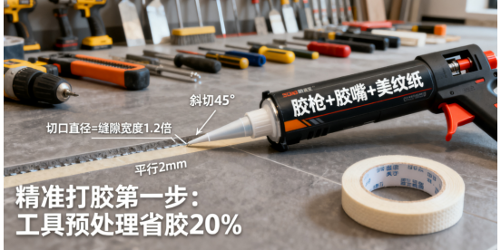 在建筑裝修、家居密封等場景中,硅酮膠是不可或缺的材料。然而,許多施工人員常常面臨“膠用得快、成本下不來”的問題——明明買了足量的膠,施工中卻頻繁出現(xiàn)材料短缺,最終導(dǎo)致項目成本超支。事實上,硅酮膠的浪費往往源于不規(guī)范的施工習(xí)慣和對材料特性的忽視。本文將從膠槍選型、膠嘴切割、施膠手法、環(huán)境控制四個核心維度,分享經(jīng)過工程驗證的省膠技巧,幫助施工者實現(xiàn)單支膠用量減少30%的目標(biāo),同時保證密封質(zhì)量不打折。