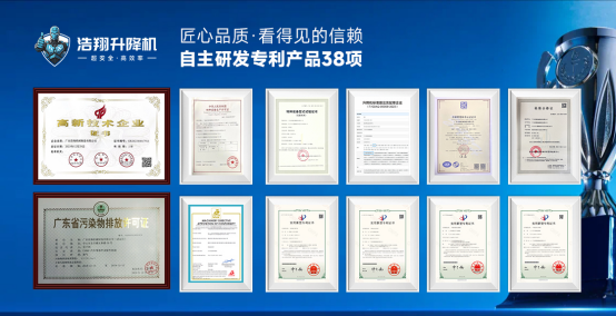 浩翔升降機始終堅守品質(zhì)底線,已成功獲得特種設(shè)備生產(chǎn)許可證《TS2444360-2027》、質(zhì)量管理體系認證《GB/T 19001-2016/ISO 9001:2015》及高新技術(shù)企業(yè)認證《GR202344017911》,以權(quán)威資質(zhì)背書產(chǎn)品合規(guī)性、可靠性與創(chuàng)新力。