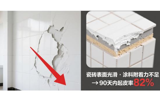 瓷磚表面通常比較光滑,其主要成分是經(jīng)過(guò)高溫?zé)频墓杷猁}等物質(zhì),這使得它具有很強(qiáng)的防水性和低吸水性。而涂料要附著在物體表面,需要有一定的摩擦力和吸附力。當(dāng)直接在瓷磚上刷涂料時(shí),由于瓷磚表面過(guò)于光滑,涂料與瓷磚之間的附著力不足,就容易出現(xiàn)起皮、脫落的現(xiàn)象。這不僅影響美觀,還需要反復(fù)進(jìn)行修補(bǔ),浪費(fèi)時(shí)間和金錢。