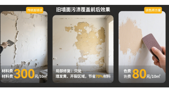 一、“局部修補(bǔ)+整體調(diào)色”涂刷法