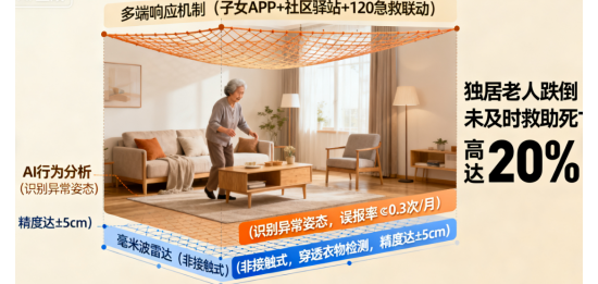清晨六點,78歲的獨居老人張婆婆在廚房取水時不慎滑倒,直到中午鄰居上門探訪才被發(fā)現(xiàn)——這樣的新聞在當(dāng)下社會并不罕見。據(jù)國家衛(wèi)健委數(shù)據(jù)顯示,我國65歲以上老年人跌倒發(fā)生率高達(dá)19.5%,其中空巢老人因缺乏即時照護(hù),跌倒后致殘致死率是普通老年群體的3倍。隨著老齡化進(jìn)程加快,家庭結(jié)構(gòu)小型化趨勢明顯,傳統(tǒng)“居家養(yǎng)老+子女照護(hù)”模式逐漸失效,如何用科技手段為獨居老人筑起安全防線,成為亟待破解的社會命題。