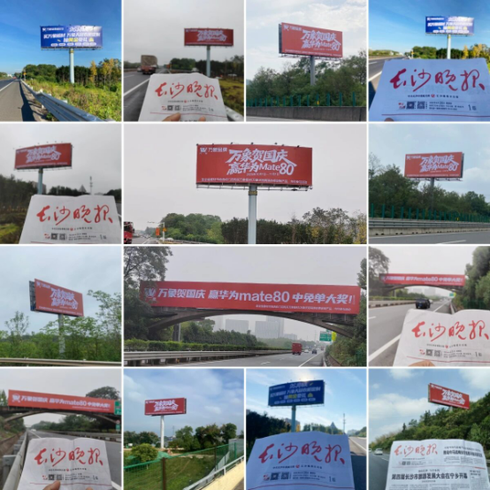 萬象品牌國(guó)慶中秋營(yíng)銷活動(dòng)全新廣告畫面,正式亮相湖南高速核心路網(wǎng)。廣告以跨線橋、雙面立柱為核心傳播載體,實(shí)現(xiàn)對(duì)多條交通干線的全域覆蓋,強(qiáng)勢(shì)搶占高速出行場(chǎng)景視覺焦點(diǎn)。