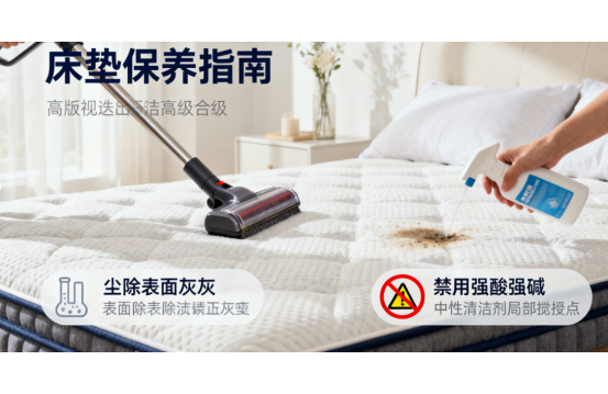 在現(xiàn)代家居生活中,床墊作為我們每日休息的重要載體,其使用壽命與睡眠質(zhì)量息息相關。然而,多數(shù)人在床墊保養(yǎng)上存在諸多盲區(qū),導致本應使用810年的床墊往往5年不到就出現(xiàn)塌陷、異味等問題。本文將從清潔、翻面、通風三個核心維度,詳解科學保養(yǎng)方法,避開傳統(tǒng)認知誤區(qū),幫助延長床墊使用壽命,守護家人健康睡眠環(huán)境。